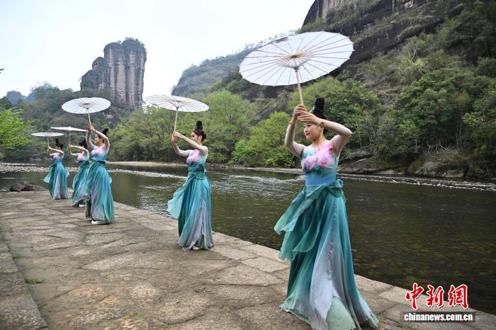 3月22日,祸修北仄,优伶正在武夷山邦家花园9直溪畔停止跳舞速闪上演。秋日里,武夷山邦家花园谦目苍郁,景致如绘。中新社记者 弛斌 摄