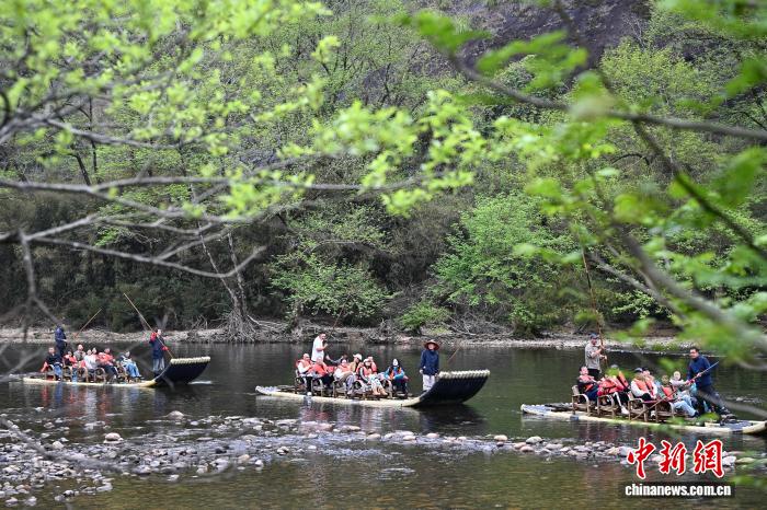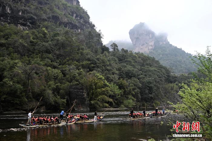 3月22日,祸修北仄,游人趁坐竹筏正在武夷山邦家花园9直溪下游览。秋日里,武夷山邦家花园谦目苍郁,景致如绘。中新社记者 弛斌 摄
